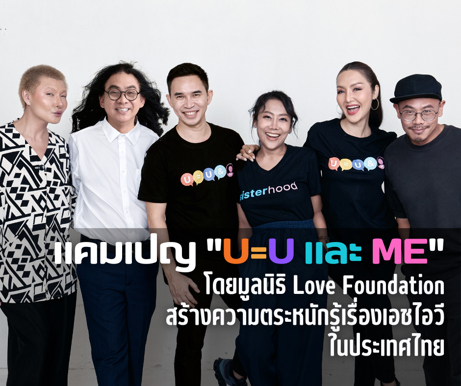 - แคมเปญ “U=U และ Me” โดยมูลนิธิ Love Foundation สร้างความตระหนักรู้เรื่องเอชไอวี ในประเทศไทย